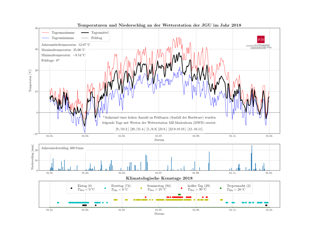 „Schockierender Anblick. Alles vertrocknet und braun, was eigentlich grün sein sollte." Mit dieser Twitterbotschaft vom 6. August 2018 schickte der deutsche Astronaut Alexander Gerst seine Eindrücke aus dem All auf die Erde. Zu diesem Zeitpunkt herrschte schon über Monate hinweg eine große Dürre über Mitteleuropa. An der Messstation des Instituts für Physik der Atmosphäre an der Universität Mainz ist diese Trockenheit vor allem ab Juni sehr deutlich zu sehen.